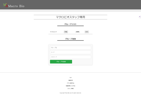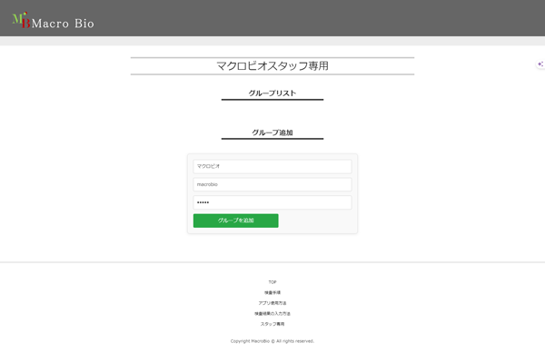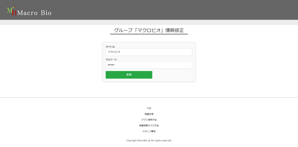 例ではグループ名はマクロビオ、英数名はmacrobioとなっています。